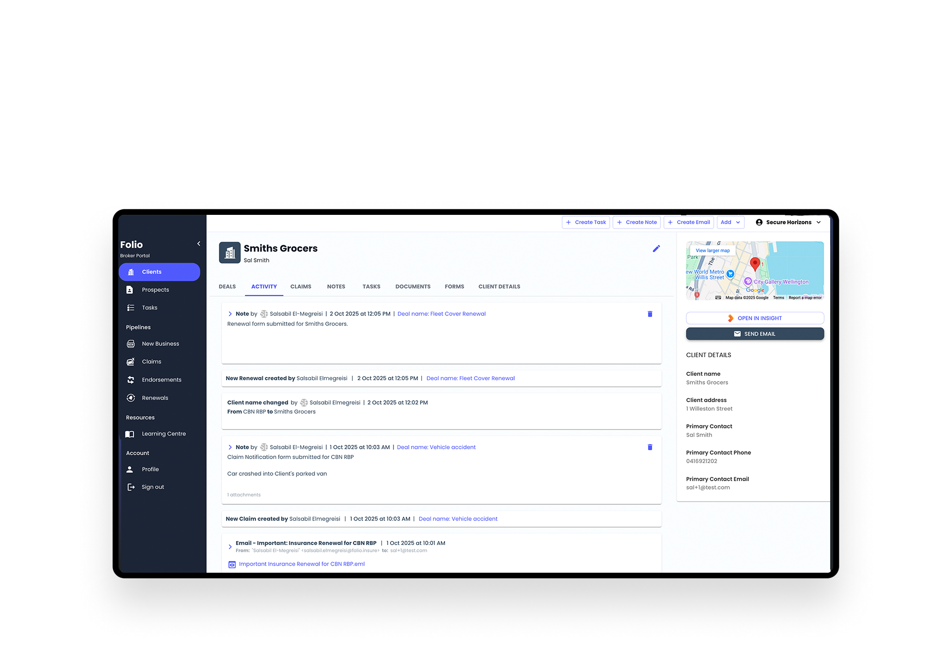 Accurate record keeping is essential for every brokerage. With built-in email integration and quick note-taking, the Folio Broker Platform makes compliance simple while reducing the time spent on routine documentation.